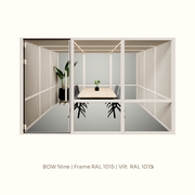 De BOW Nine is een ruime, modulaire akoestische werk- en vergaderruimte voor maximaal 9 personen, ontworpen om samenwerking, concentratie en overleg mogelijk te maken in moderne kantooromgevingen. Of je nu kleine teams laat brainstormen of langere meetings organiseert, deze unit biedt een comfortabele, privacy-rijke omgeving met uitstekende geluidsisolatie.
